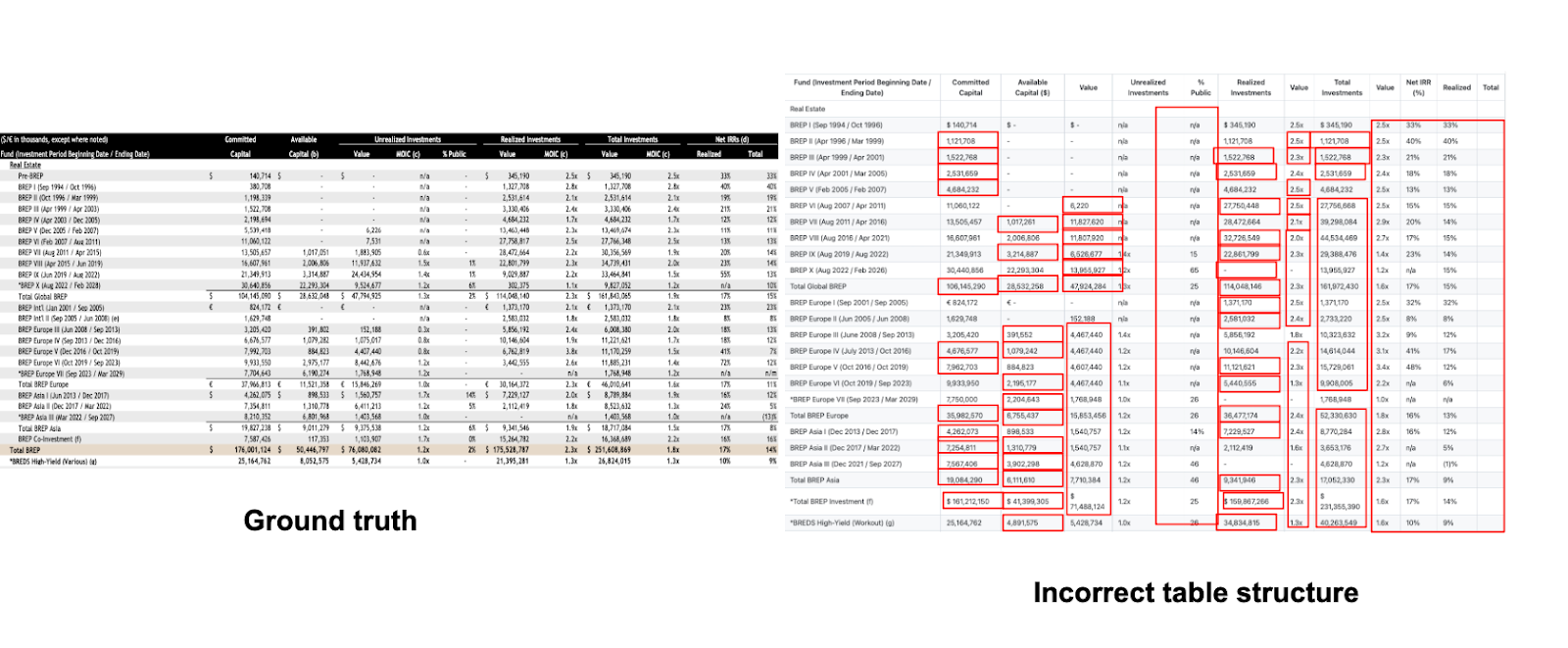 Tables are the schema of finance. They encode hierarchies, multi-level headers, rollups, and constraints. Many general-purpose systems flatten two-dimensional structure into a one-dimensional token sequence. The result is that numbers are captured but their relationships are lost. Totals drift away from subtotals. Headers become detached from the cells they govern. Multi-page spreads break row continuity. What looks like “90 percent accurate” at the character level becomes unusable at the analytical level.