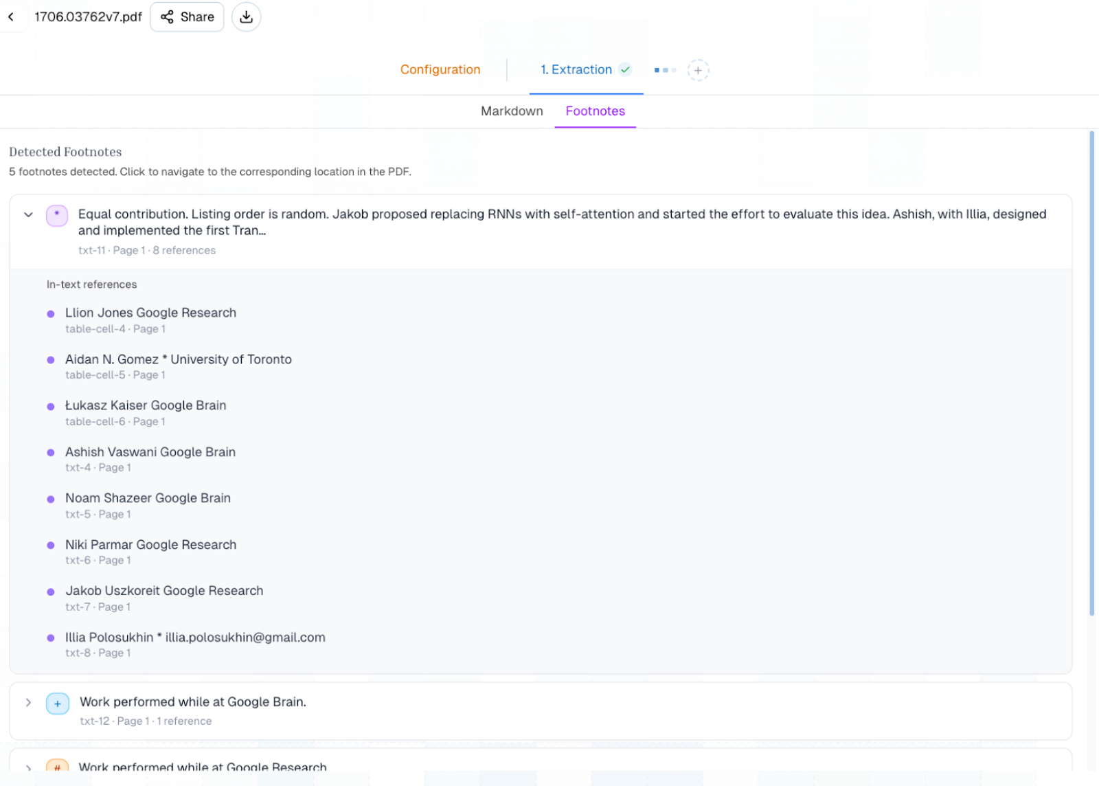 Now, footnotes come through as structured data from the start, arriving linked to their references, complete across page boundaries, and ready for LLM context windows, database ingestion, or compliance workflows without any intermediate cleanup step.