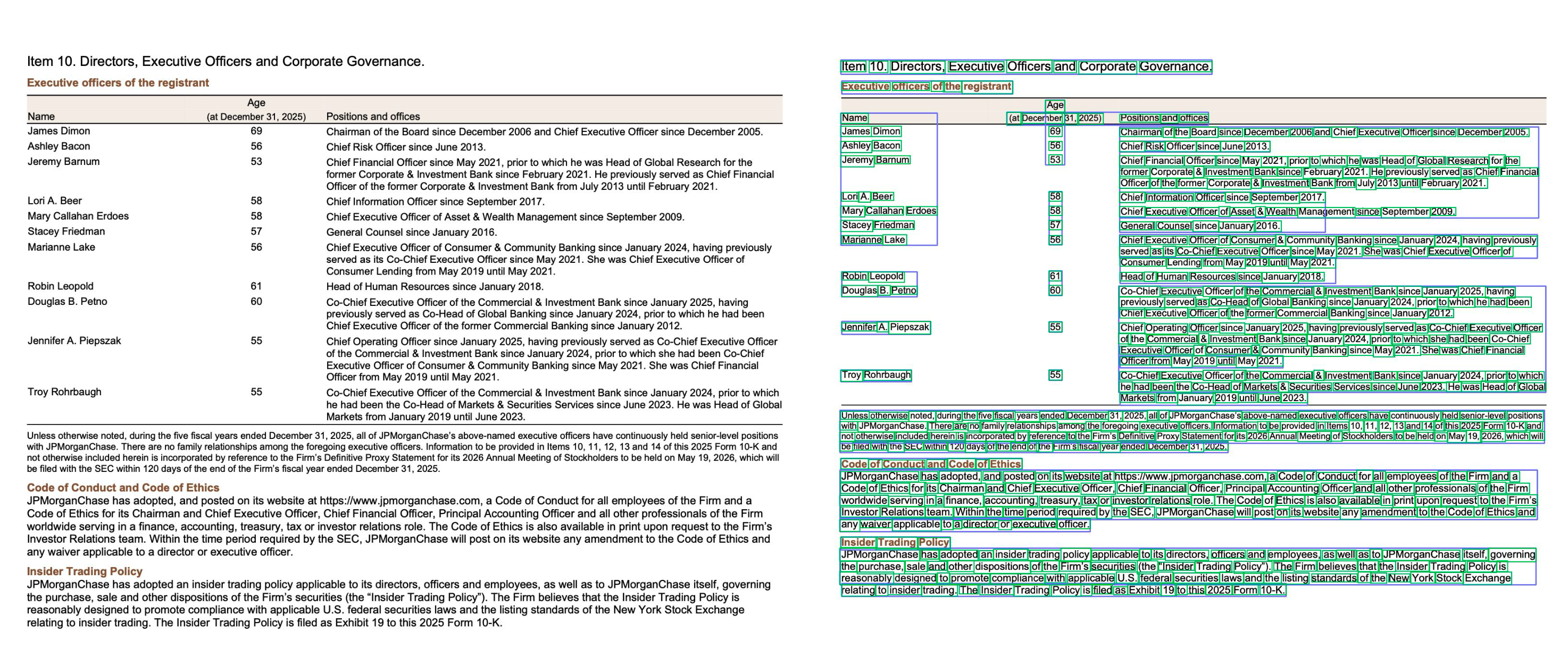 Cross-section linking. A single data point in a 10-K often requires context from multiple sections. Revenue figures in the income statement connect to segment disclosures in the footnotes, which connect to risk factors in the MD&A. An automated pipeline that only extracts tables in isolation misses these connections. Effective systems preserve document-level context so that downstream consumers, whether human analysts or LLMs, can trace any value back to its source and surrounding narrative.