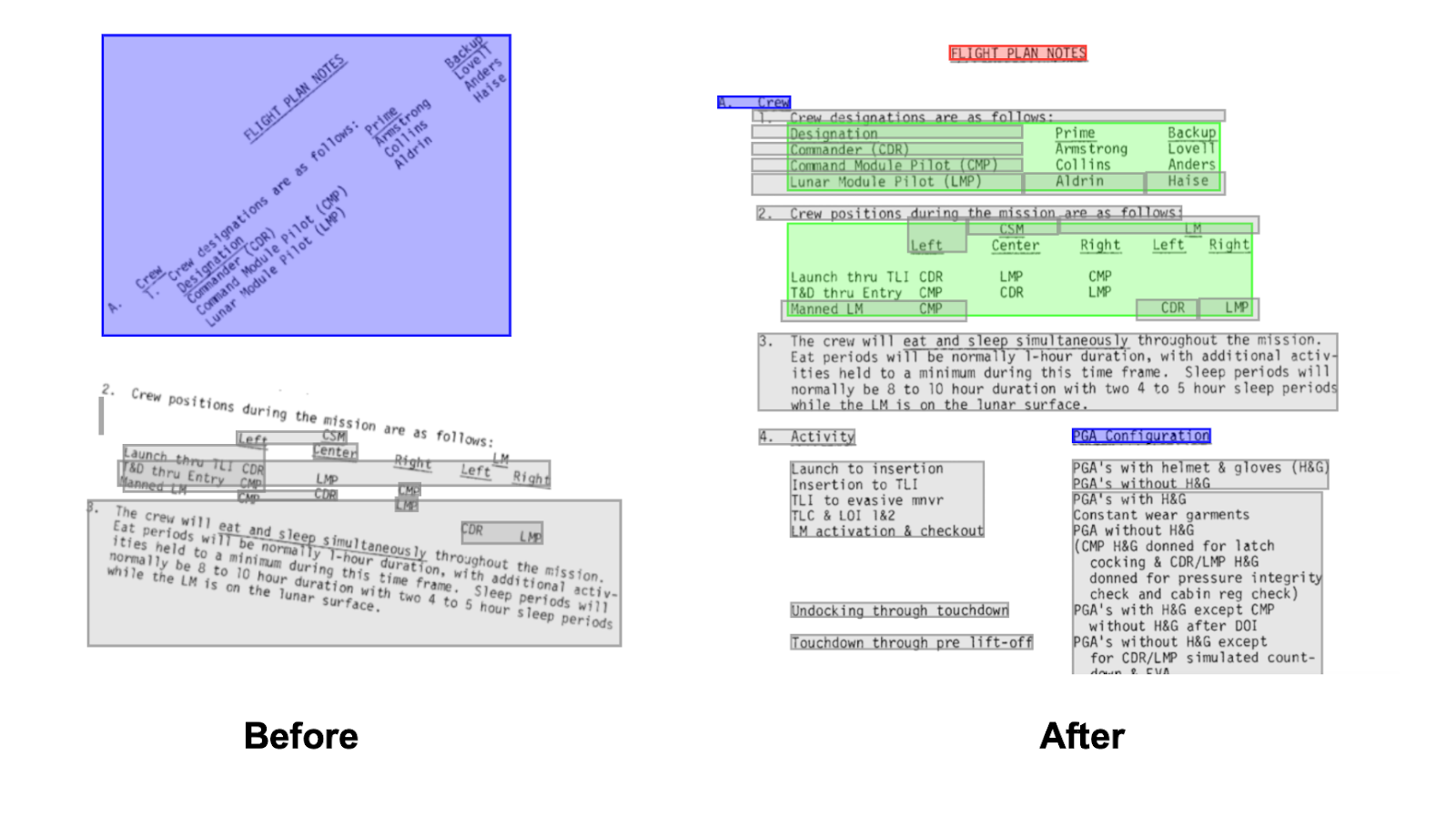 The model produces a normalized document that is guaranteed to be upright, properly aligned, and compatible with our downstream models.