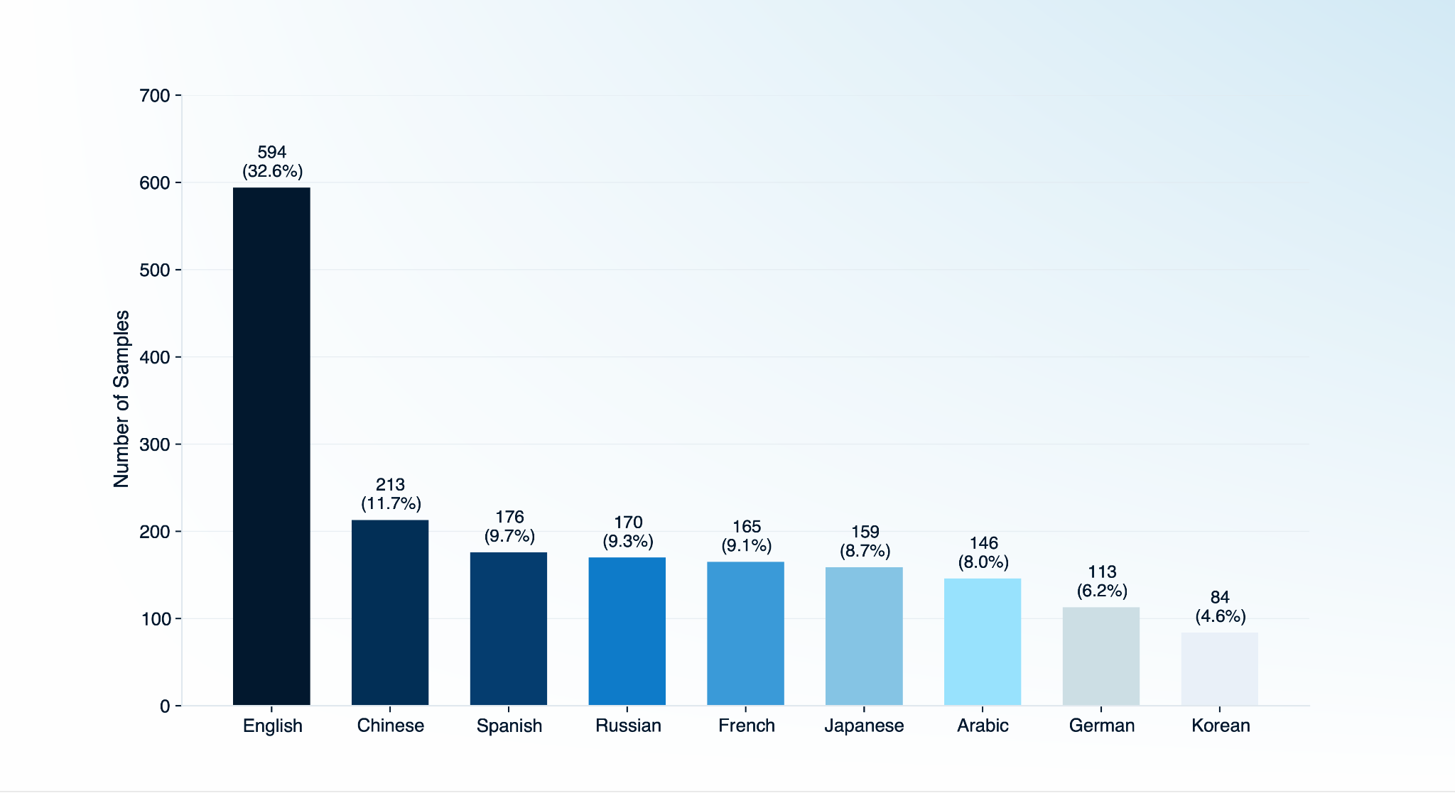 The Pulse team worked with a dedicated data labeling team, curated with subject matter experts experienced across target languages and HTML table structures. Each table has a ground truth annotation in HTML with full structural markup (rowspan, colspan, thead, tbody). The dataset contains 1,820 table images across 380 unique source documents, across 9 languages and 4 scripts (Latin, CJK, Arabic, Cyrillic).
